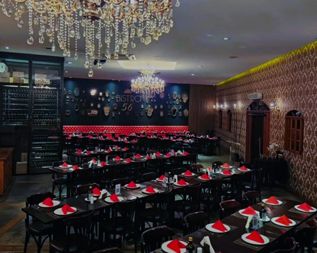 Inspirado nos tradicionais Bistrôs franceses, o Bistro 56 traz a clássica experiência da culinária francesa, mesclando uma cozinha contemporânea com pratos desde a cozinha Italiana até a culinária chinesa, uma novidade na região. O ambiente foi minuciosamente pensado e criado com uma atmosfera descontraída e informal, para que os clientes se sintam em um tradicional restaurante francês em sua experiência de consumo do início ao fim.